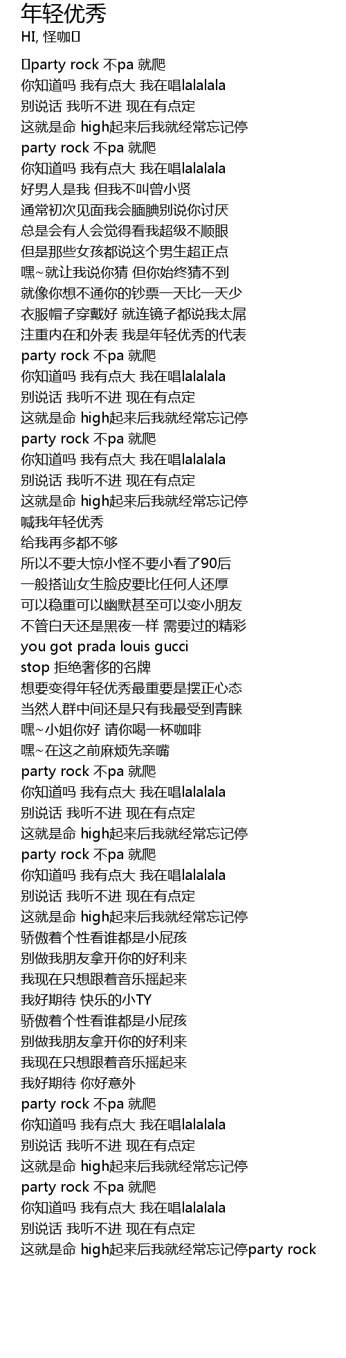 | zhe jiu shi ming high qi lai hou wo jiu jing chang wang ji ting party rock |