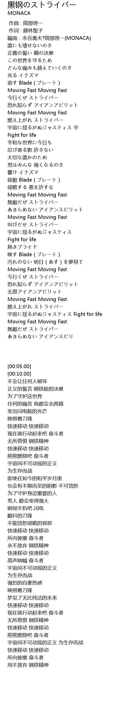 | [02:57.00] | 宇宙に揺るがぬジャスティス Fight for life |