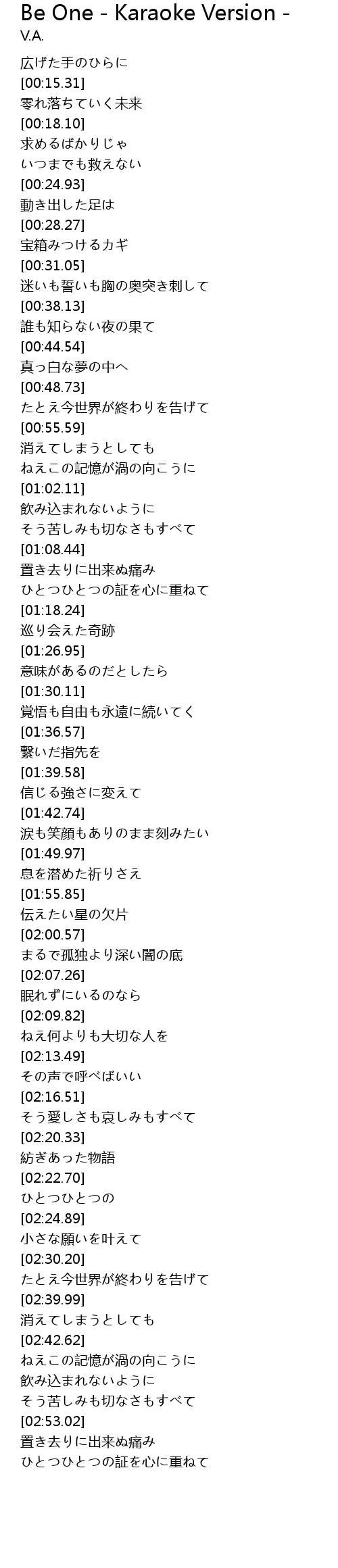 | Song | Be One - Karaoke Version - |