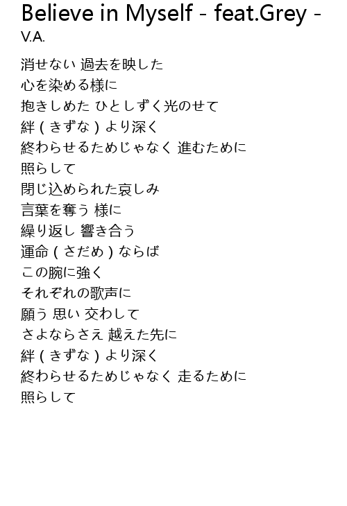 | Song | Believe in Myself - feat.Grey - |