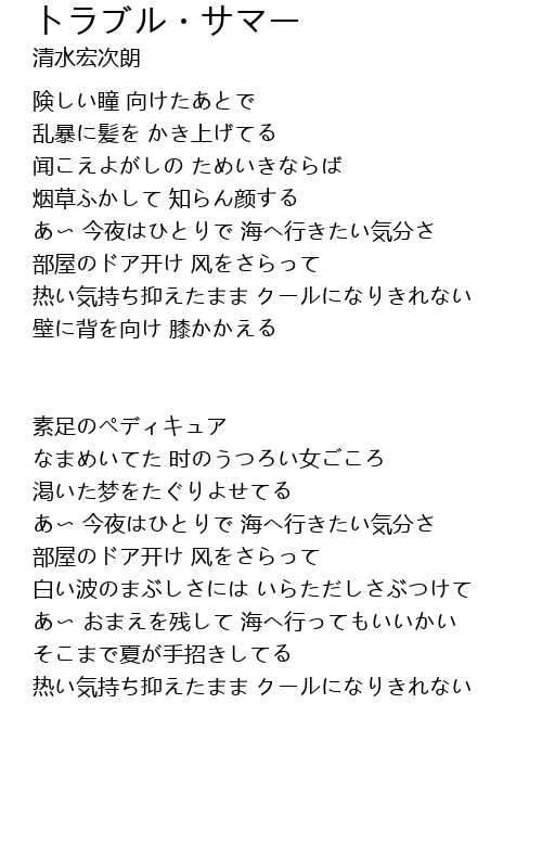 あ〜 今夜はひとりで 海へ行きたい気分さ |
