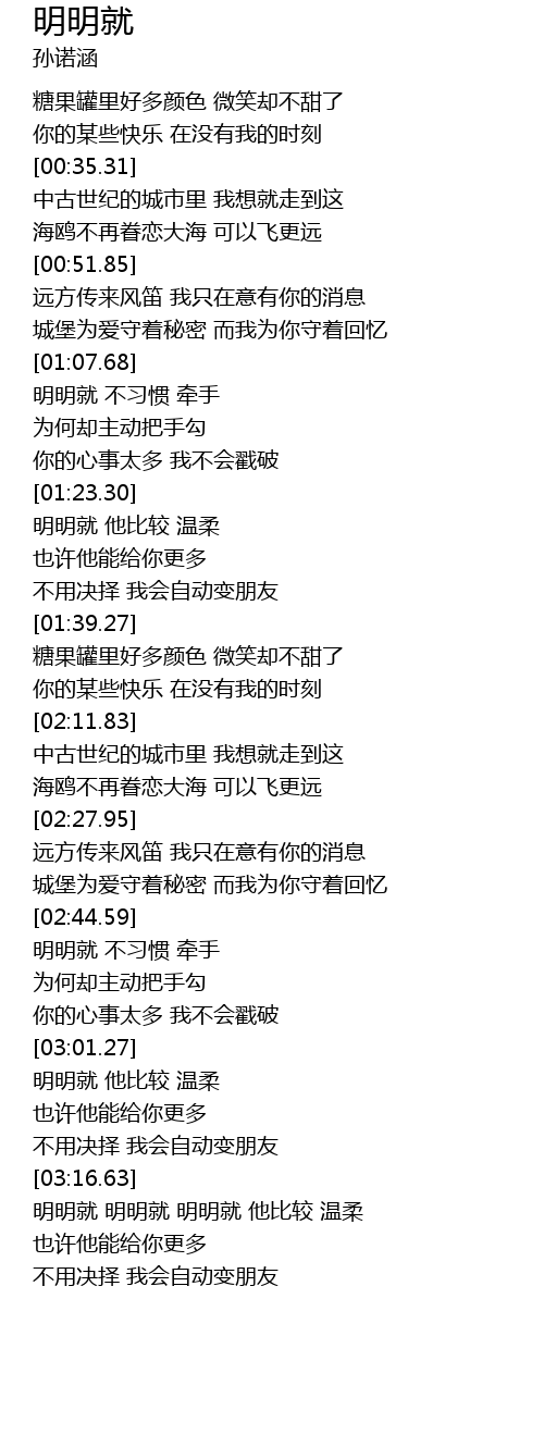 | [03:35.12] | 明明就 明明就 明明就 他比较 温柔 |