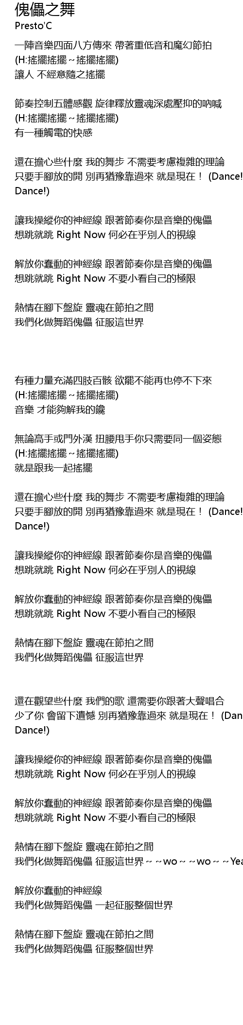 | 讓我操縱你的神經線 跟著節奏你是音樂的傀儡 | |