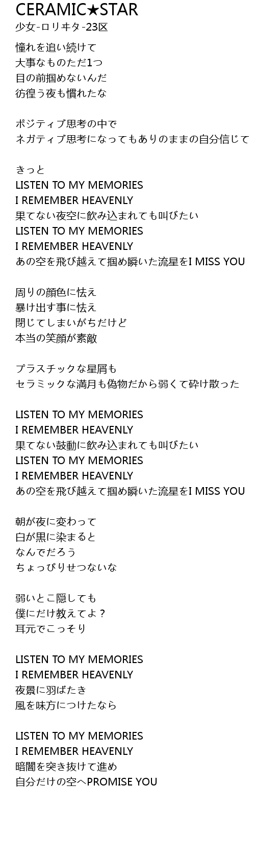| あの空を飛び越えて掴め瞬いた流星をI MISS YOU | |