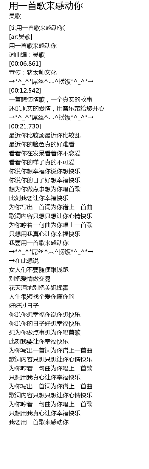 | [00:00.430] | 用一首歌来感动你 |