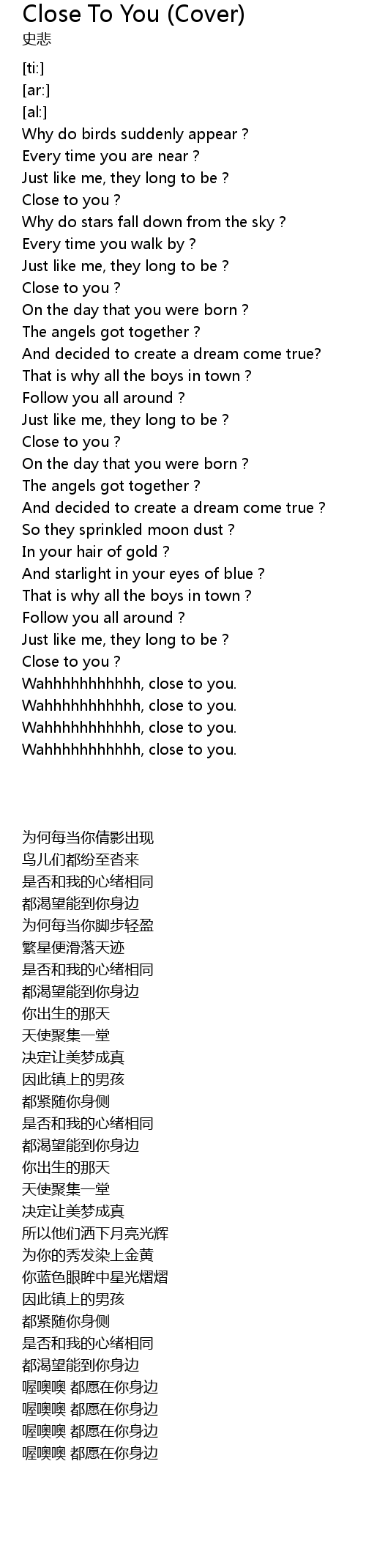| [02:31.38] | Wahhhhhhhhhhh, close to you. |