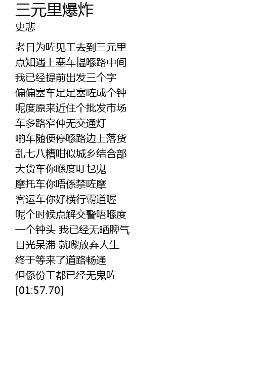 | [00:47.08] | 点知遇上塞车韫喺路中间 |