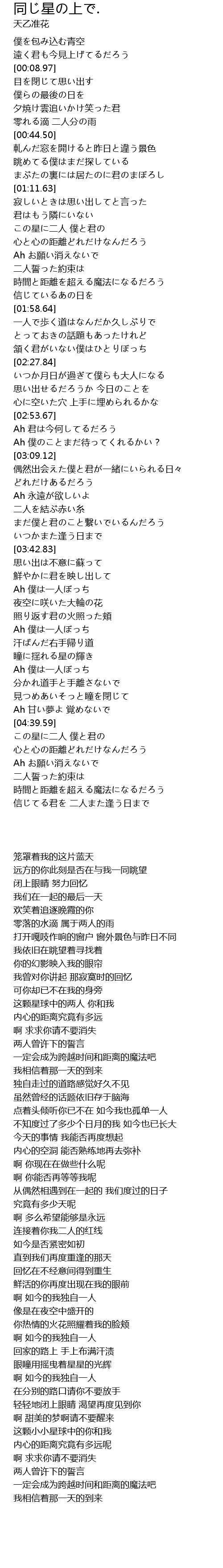 | [04:57.29] | この星に二人 僕と君の |