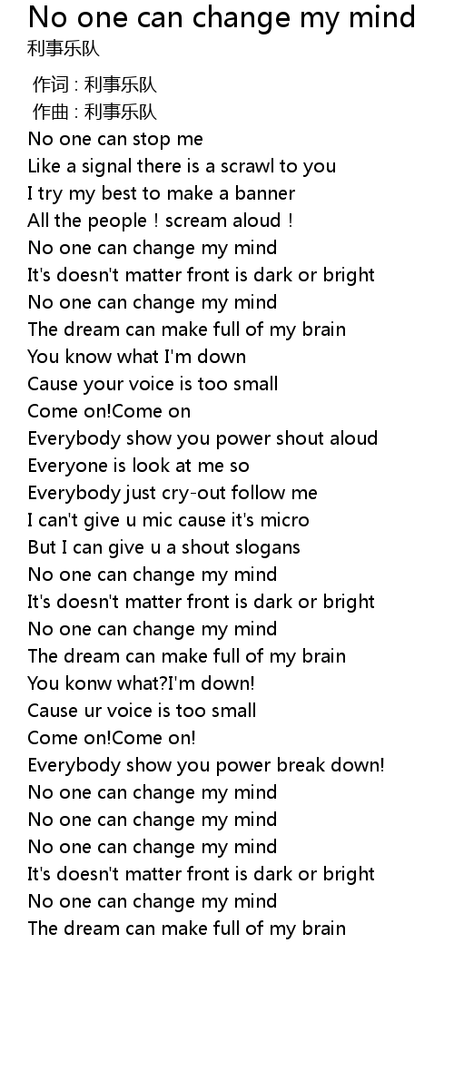 | [01:51.060] | No one can change my mind |