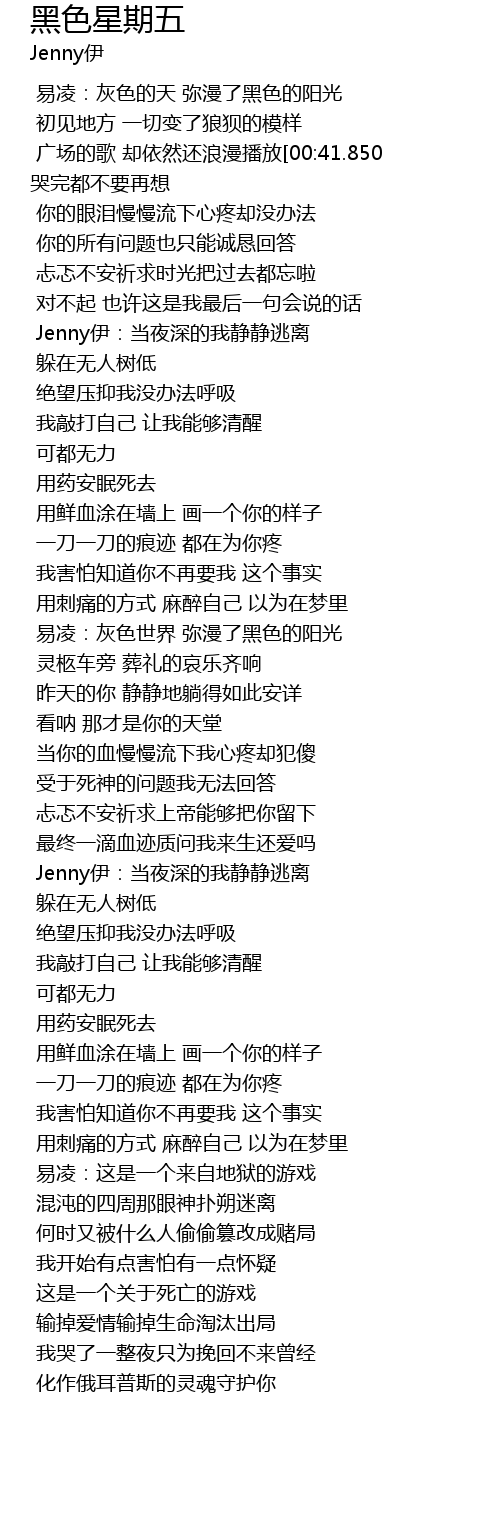 | [02:41.510] | Jenny伊:当夜深的我静静逃离 |