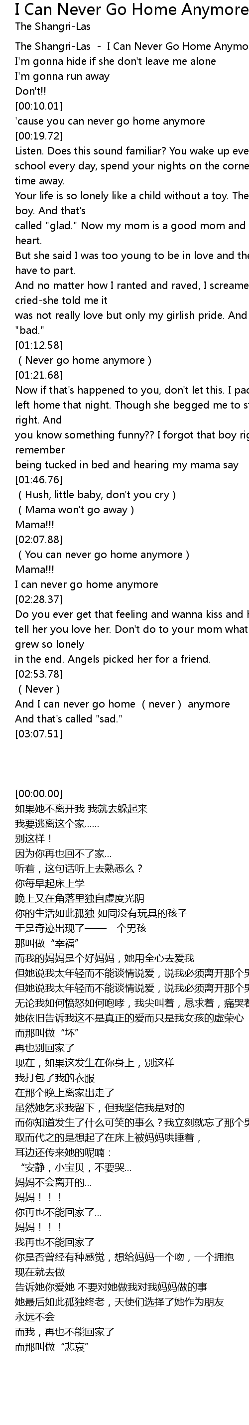| [00:00.00] | The ShangriLas I Can Never Go Home Anymore |