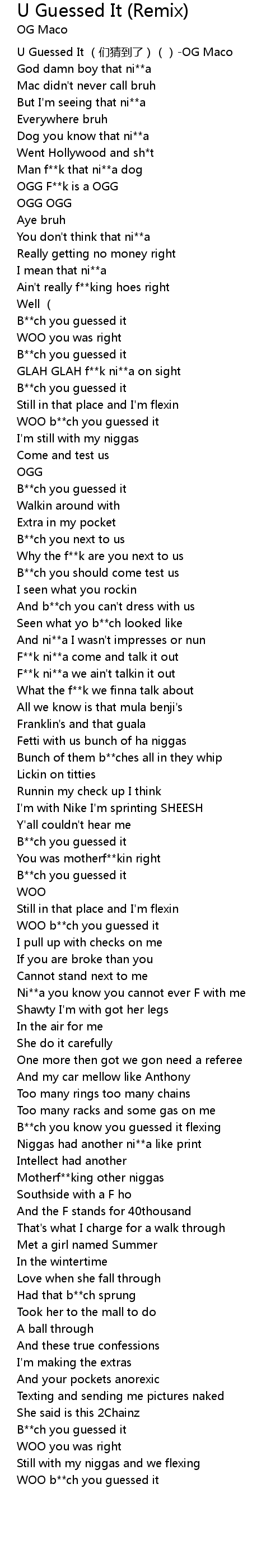 | [00:00.00] | U Guessed It (们猜到了)()-OG Maco |