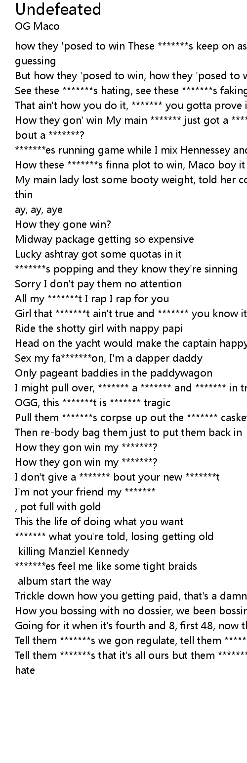 | How they gon' win My main ******* just got a *******, damn *******, ain't that bout a *******? | |