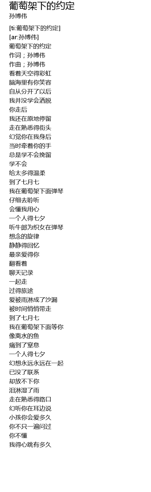 | [02:48.919] | wǒ zài pú táo jià xià miàn děng nǐ |