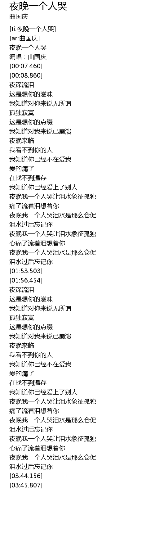 | [00:01.457] | 夜晚一个人哭 |