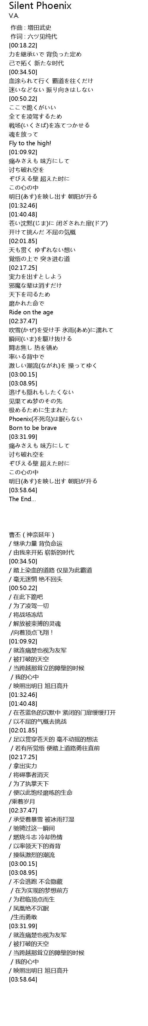 | [03:26.20] | Phoenix(不死鸟)は眠らない |