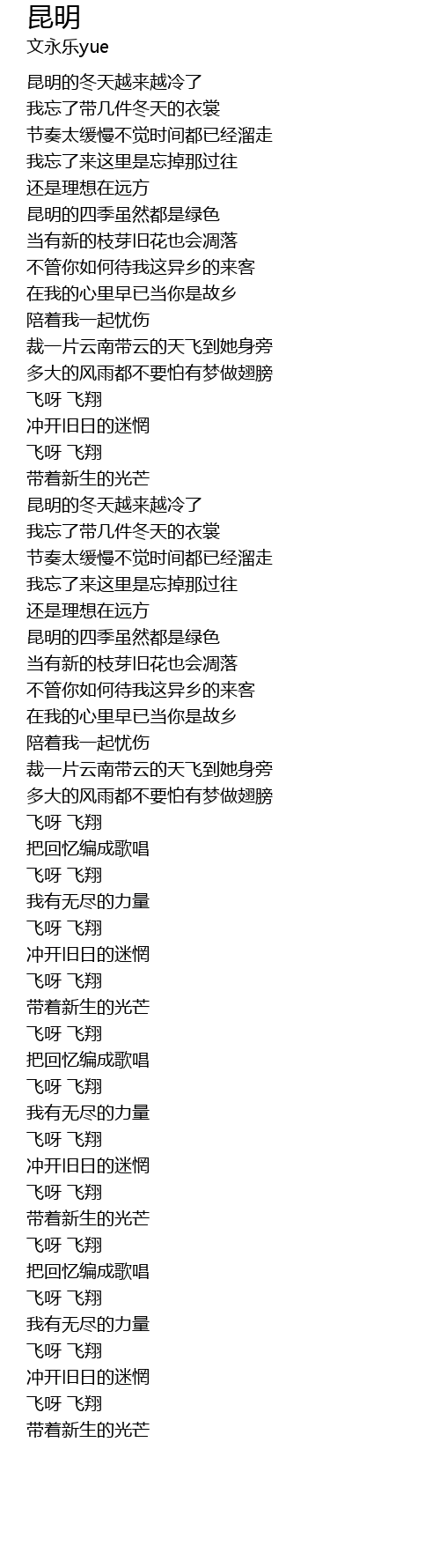 | [00:34.28] | kun ming de dong tian yue lai yue leng le |