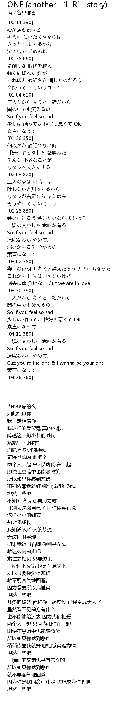 | [04:24.360] | Cuz you're the one & I wanna be your one |