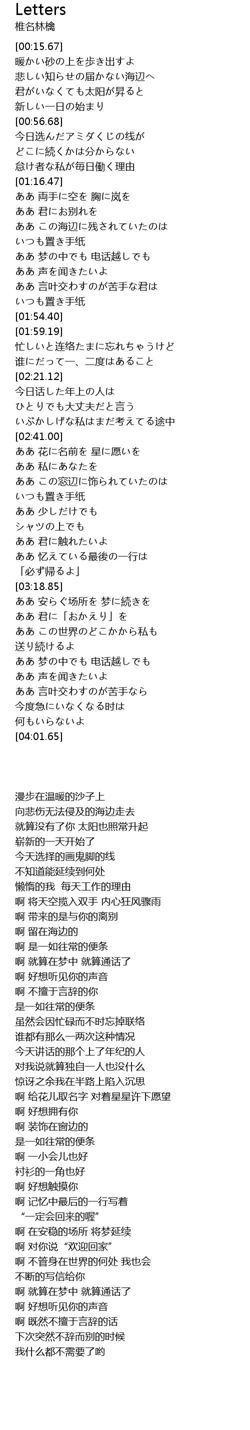 | [01:33.16] | いつも置き手纸 |