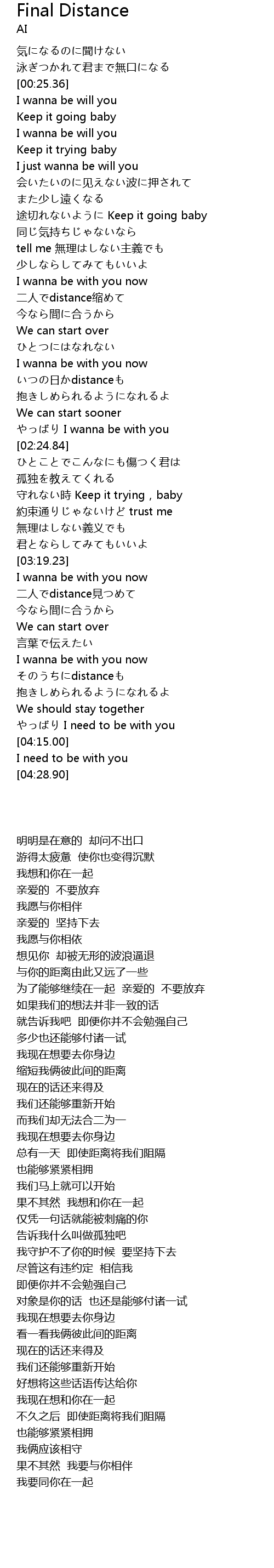 | [03:52.04] | そのうちにdistanceも |