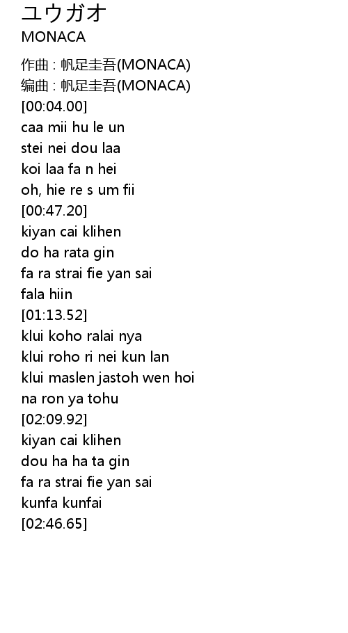 | [00:02.01] | bian qu : fan zu gui wu MONACA |