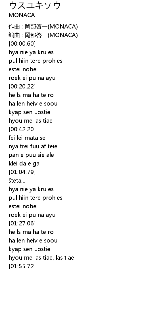 | [00:00.00] | 作曲 : 岡部啓一(MONACA) |