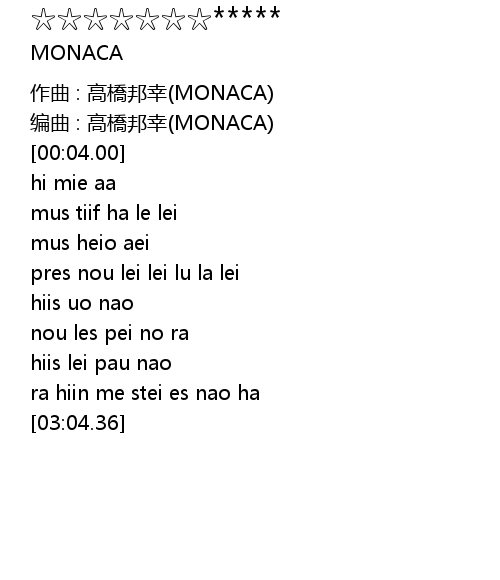 | [00:01.00] | zuo qu : gao qiao bang xing MONACA |