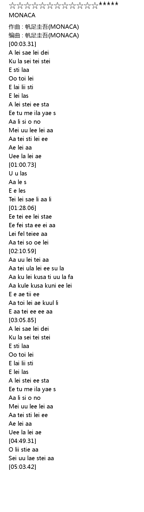 | [00:00.01] | bian qu : fan zu gui wu MONACA |