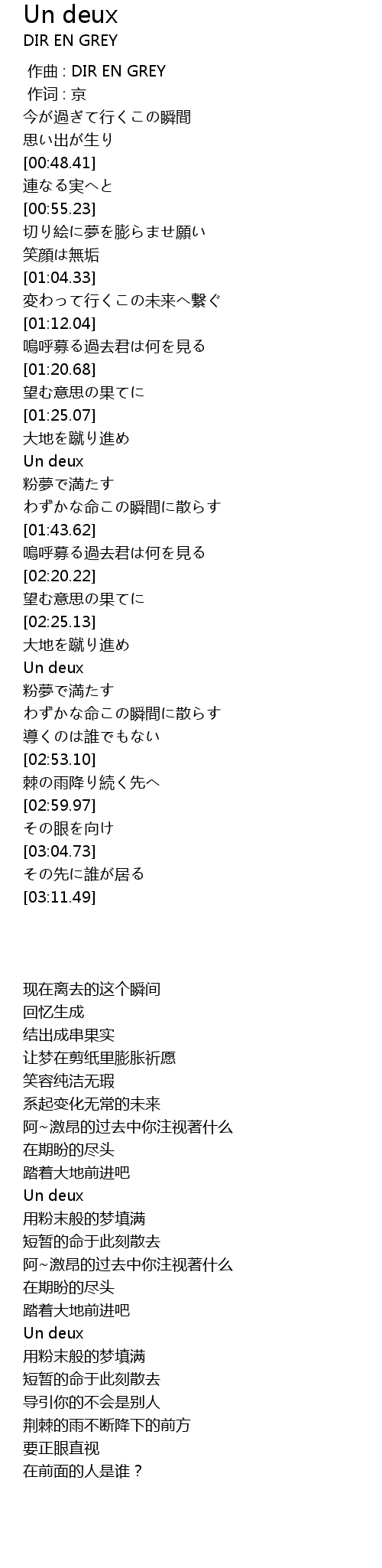| [00:00.00] | zuo qu : DIR EN GREY |