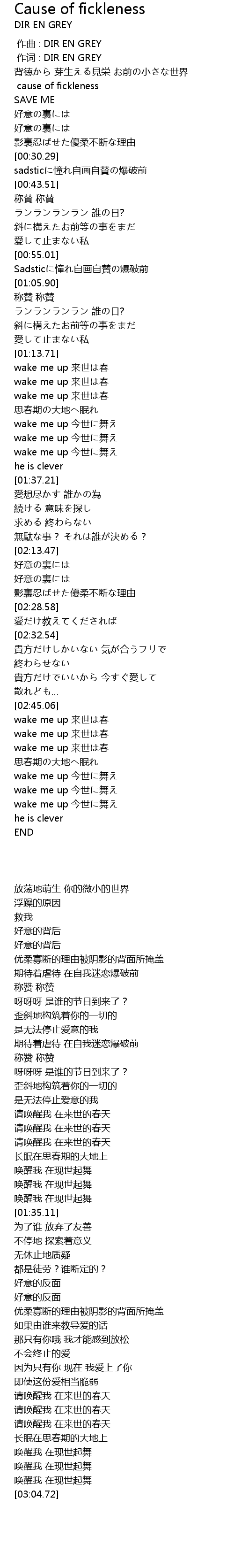 | [00:00.00] | zuò qǔ : DIR EN GREY |