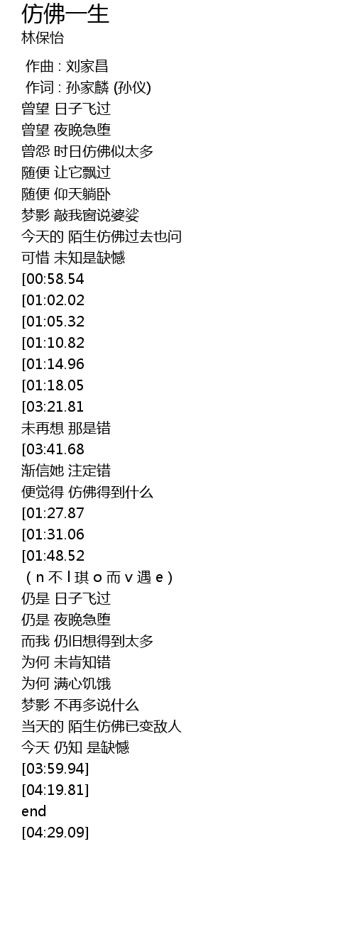 | [03:48.70][03:41.68] | 仿佛中 仿佛我已恍惚 太多 |