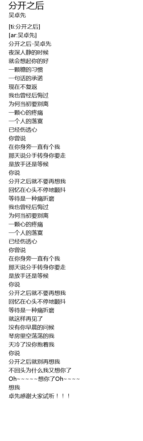 | [00:02.587] | fen kai zhi hou wu zhuo xian |