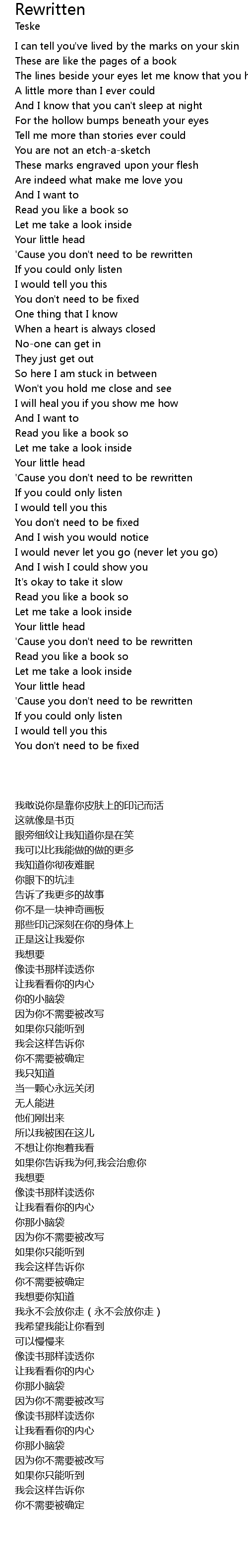 | [02:39.84] | 'Cause you don't need to be rewritten |