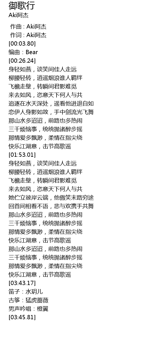 | [03:35.82] | 快乐江湖意,击节高歌谣 |
