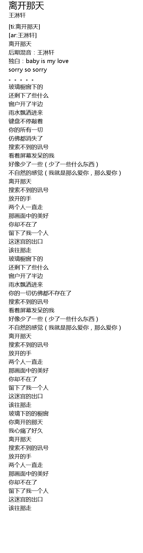 | [02:25.650] | nǐ lí kāi de nà tiān |