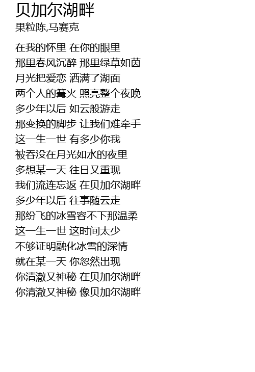 | [02:39.96] | 你清澈又神秘 像贝加尔湖畔 |