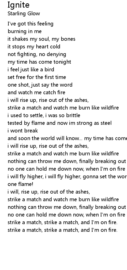 strike a match and watch me burn like wildfire |