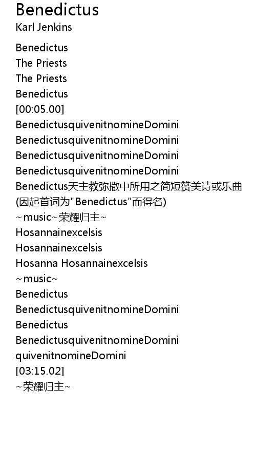 | [01:36.05] | (因起首词为"Benedictus"而得名) |