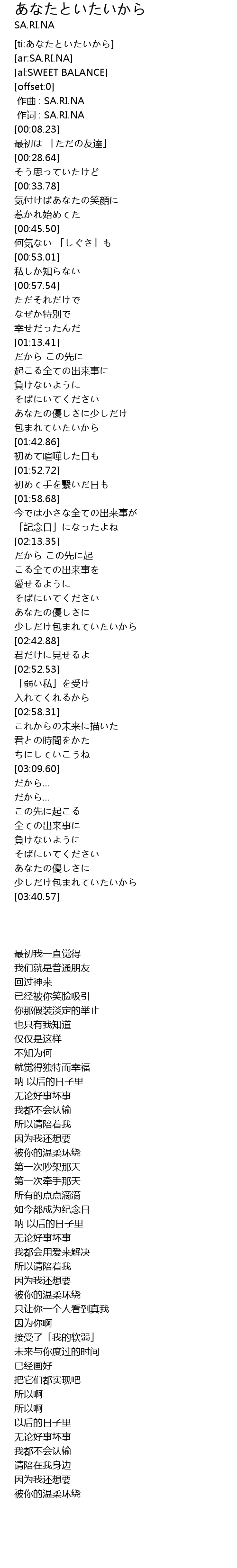 | [00:01.00] | zuo ci : SA. RI. NA |