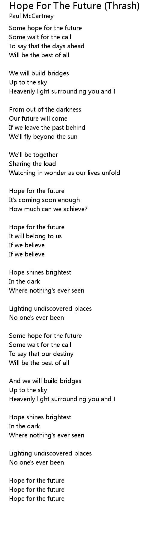 Hope For The Future (Thrash) Lyrics