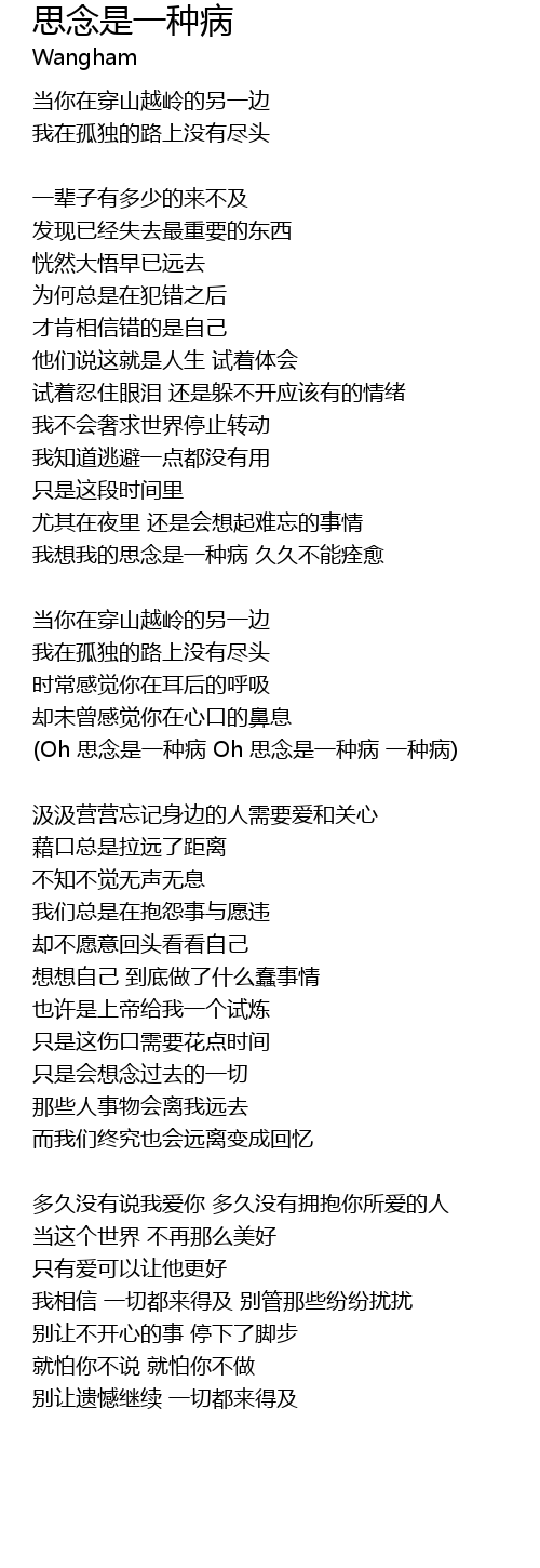 | (Oh 思念是一种病 Oh 思念是一种病 一种病) | |