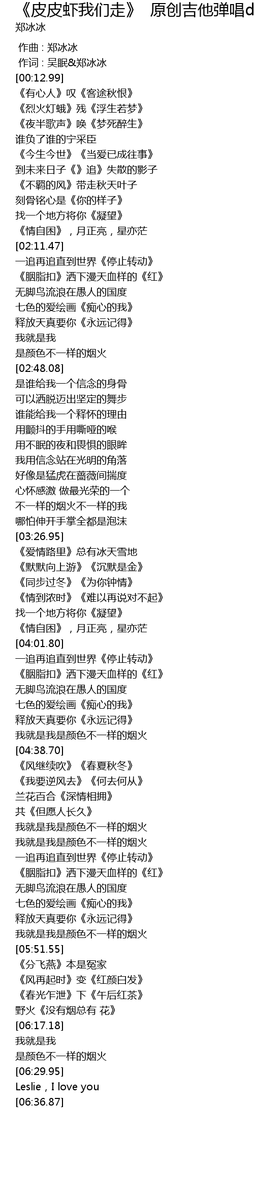 | [00:01.00] | 作词 : 吴眠&郑冰冰 |
