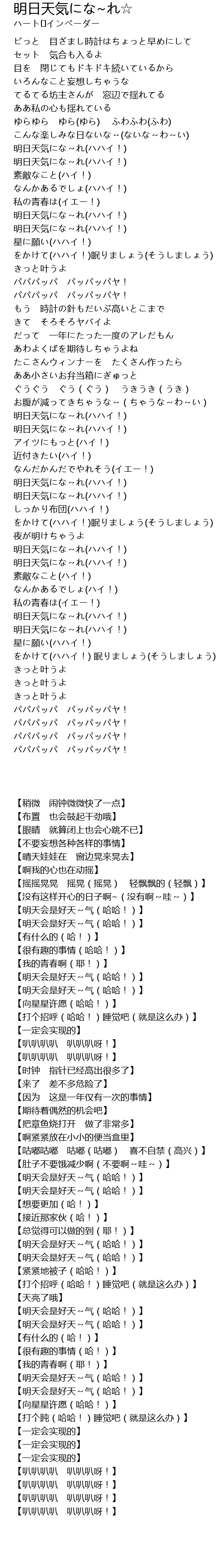 | [00:52.343] | 明日天気にな~れ(ハハイ!) |