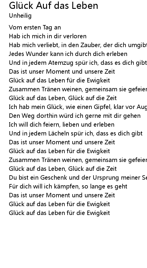 | Glü ck auf das Leben fü r die Ewigkeit |
