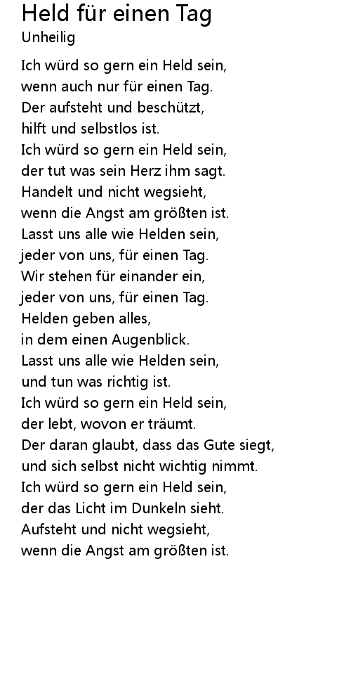 | Ich wü rd so gern ein Held sein, | |