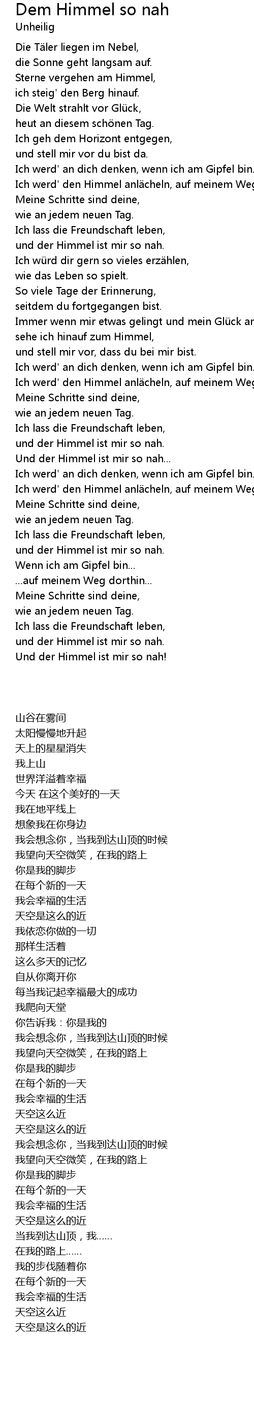 | [02:20.29] | Ich werd' an dich denken, wenn ich am Gipfel bin. |