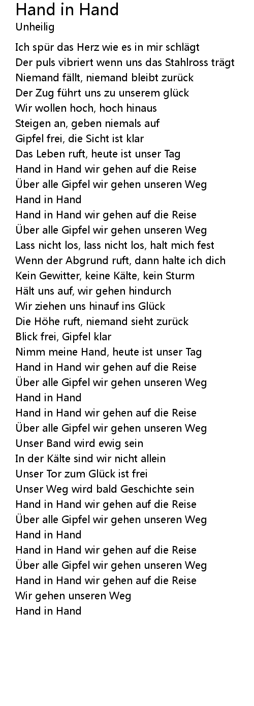 | Hand in Hand wir gehen auf die Reise | |