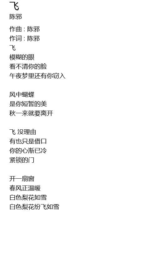 | 作词 : 陈邪 | |