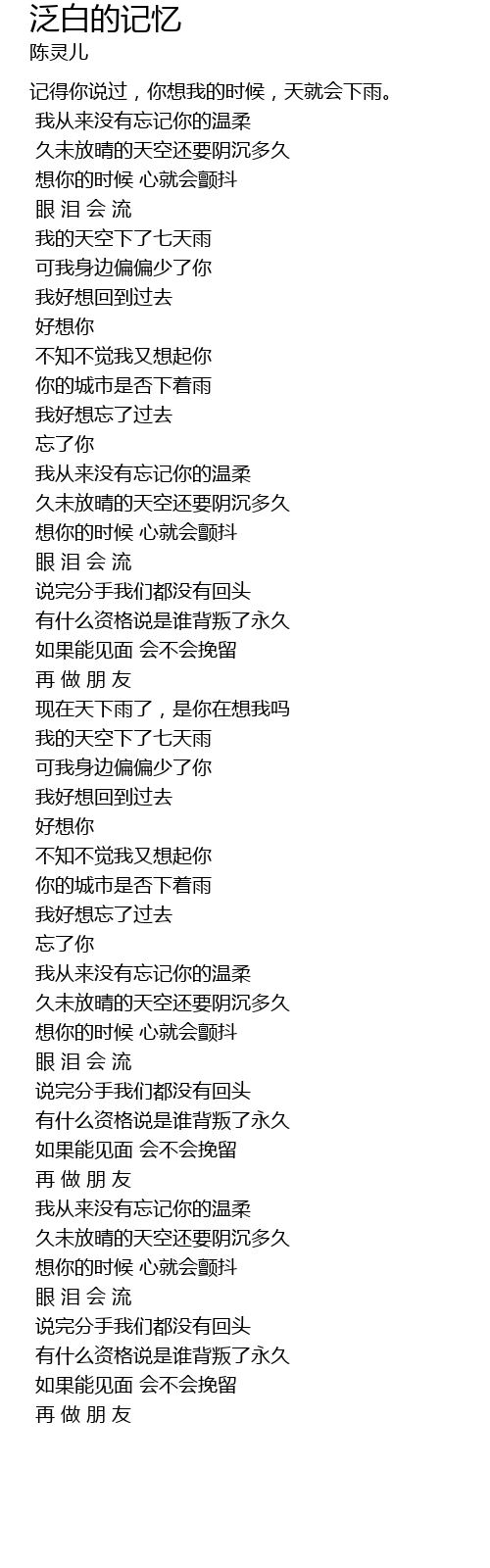 | jì de nǐ shuō guò, nǐ xiǎng wǒ de shí hòu, tiān jiù huì xià yǔ. | |