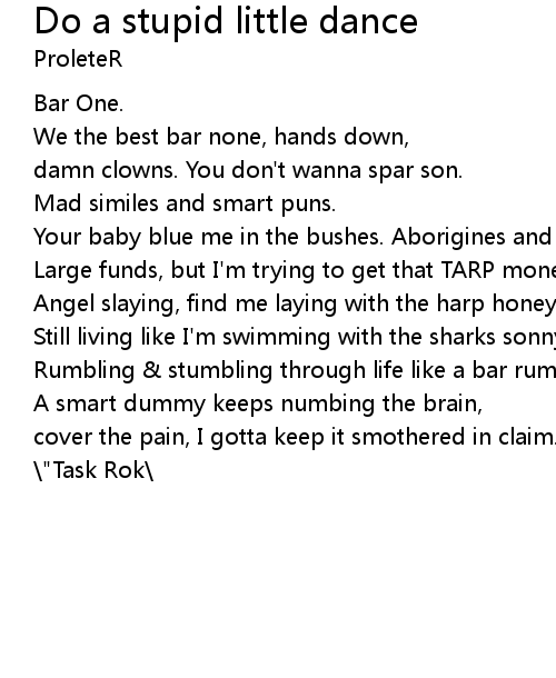 | Song | Do a stupid little dance |